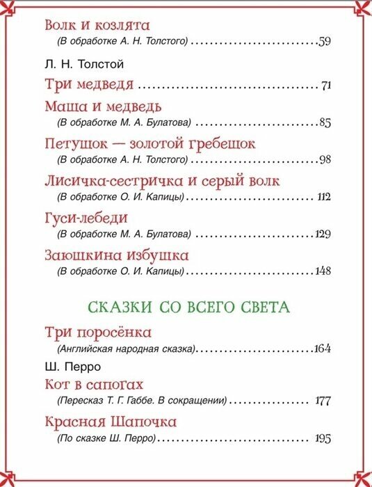 В сборник вошли самые известные и любимые русские народные сказки: «Репка», «Колобок», «Теремок», а также произведения великих сказочников: Шарля Перро, Ханса Кристиана Андерсена и братьев Гримм. Эти забавные, трогательные и поучительные истории непременно понравятся малышам.