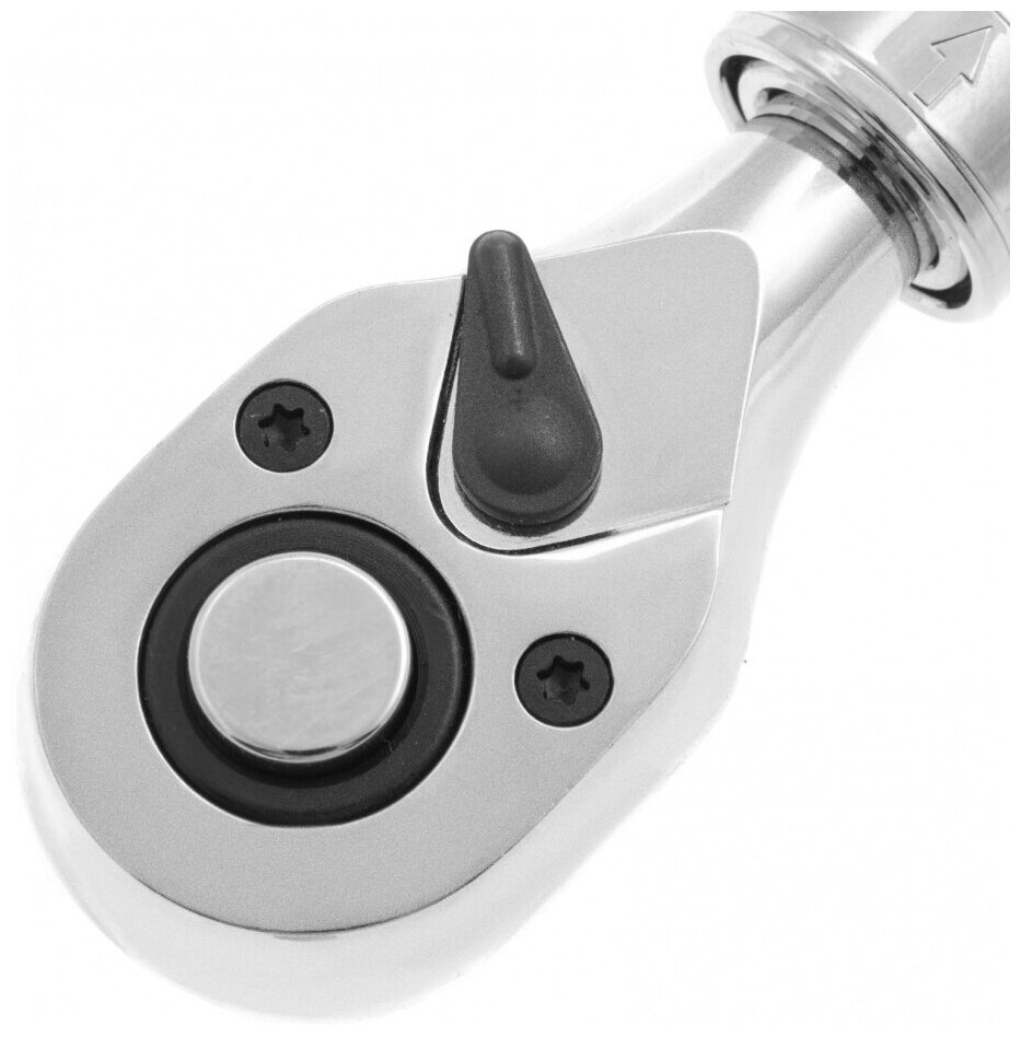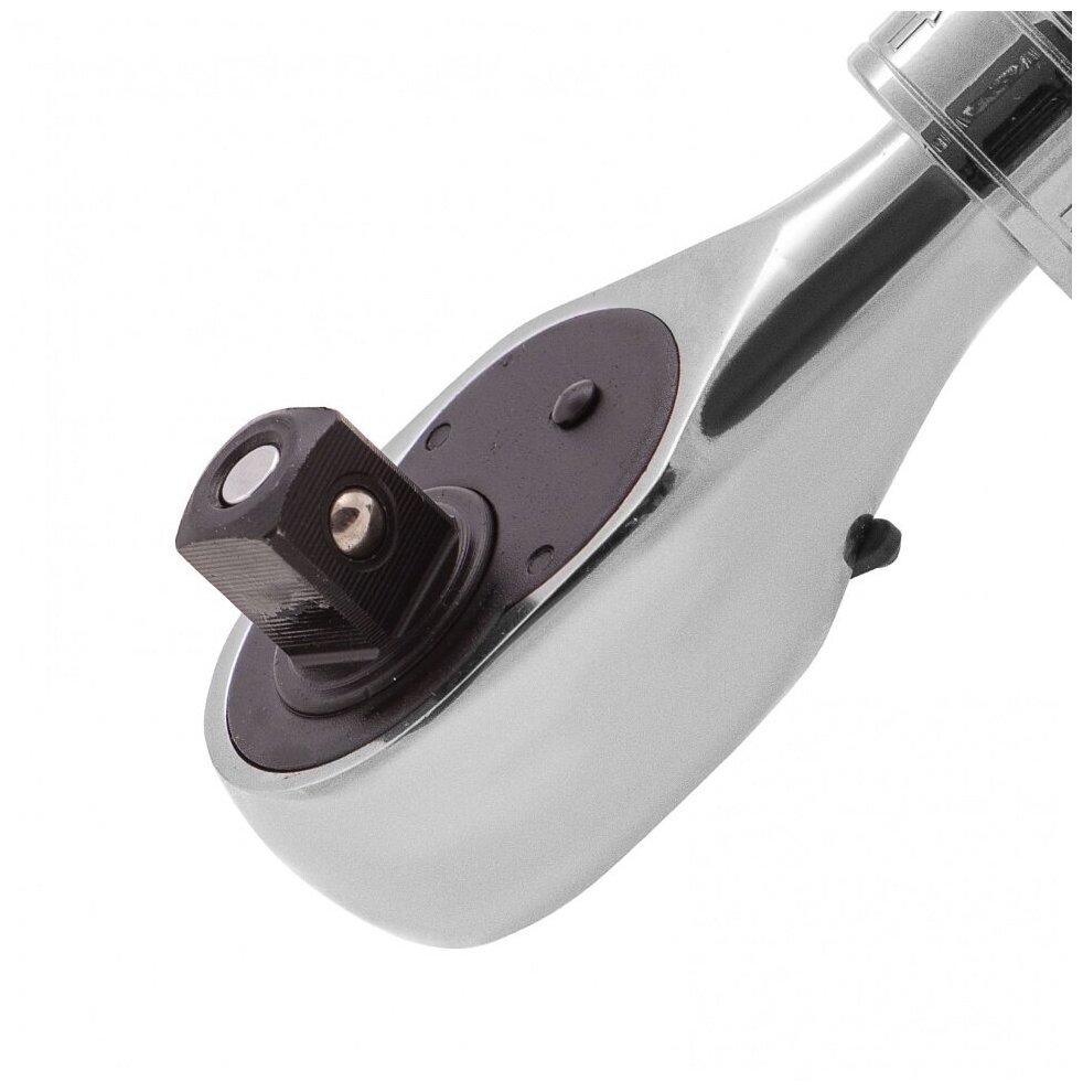 Трещоточный ключ особенно удобен для работы в труднодоступных местах, так как имеет запатентованный механизм фиксации телескопической рукоятки. Храповый механизм имеет шаг 5 градусов. Инструмент используется в слесарных мастерских, автосервисах, пригодится и в быту. Благодаря стали хромованадиевой группы, отличается высокой износостойкостью. Преимущества: - Хромированная поверхность устойчива к ржавчине и воздействию агрессивных веществ; - Реверсивный механизм позволяет использовать инструмент как для закручивания, так и для откручивания крепежей; - Кнопка быстрого сброса упрощает съем и установку насадок; - Благодаря присоединительному квадрату с шариком оснастка не соскакивает во время работы; - Удобная ручка надежно ложится в руку и не выскальзывает из ладони. Предназначен для монтажных работ с резьбовыми соединениями. Материал: хромованадиевая сталь; Материал рукоятки: двухкомпонентный; Посадочный квадрат: 1/2"; Количество зубьев: 72 шт; Длина: 305 - 445 мм.