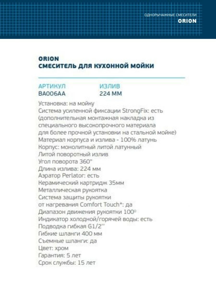 - 10 13 340185 Смеситель для кухни Орион BA006AA