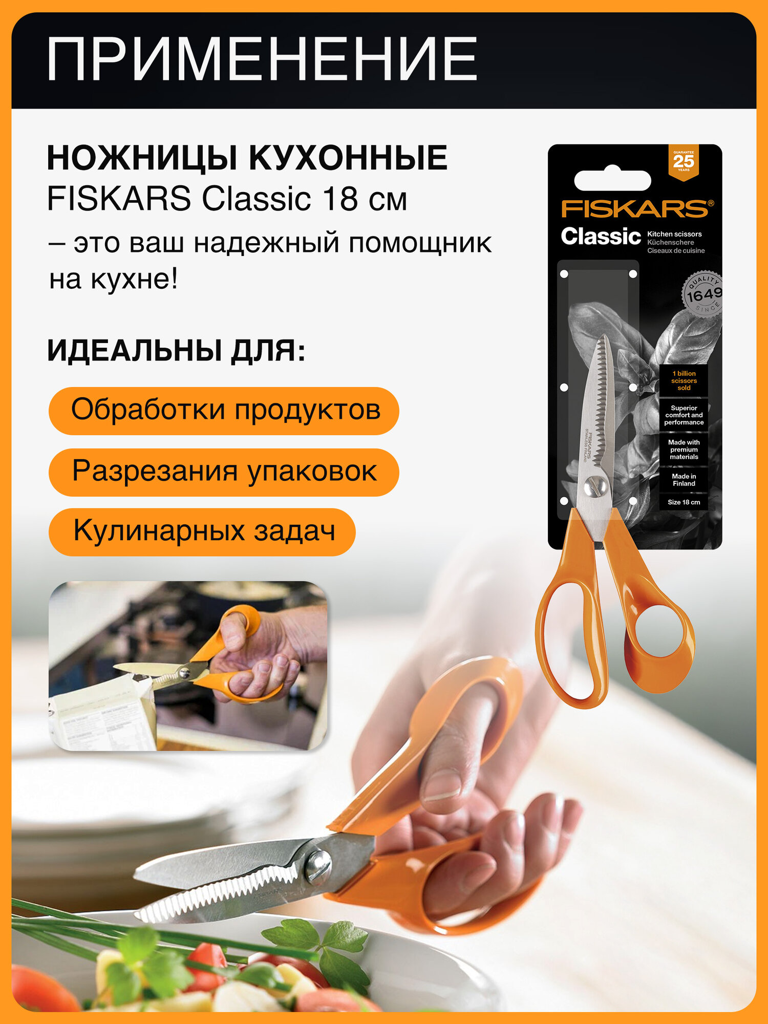 Ножницы Fiskars Classic давно стали классикой дизайна, которая сочетает в себе превосходное качество и производительность. Подходят для любых задач. Изготовлены из высококачественных материалов.