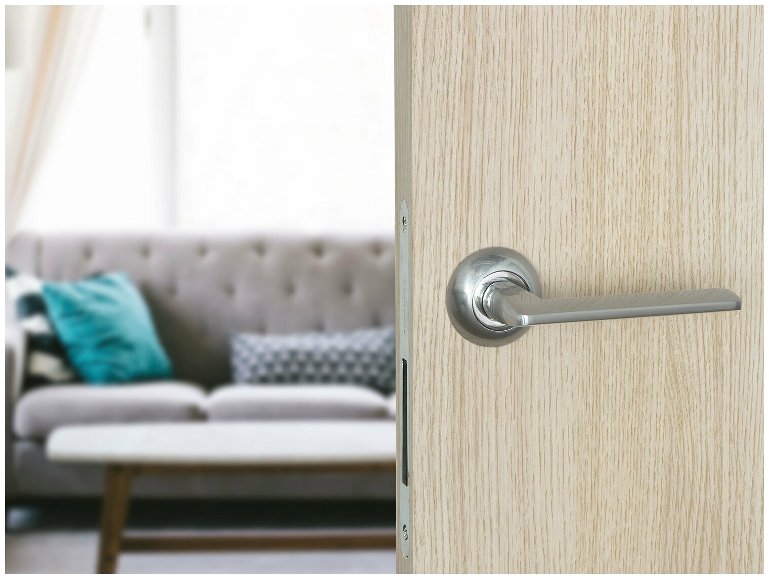 Palladium Rasoio подходит для межкомнатных и входных дверей – не имеет значения, правые те или левые. Материал ручки – ЦАМ, нержавеющий, прекрасно полируемый и кажущийся теплым на ощупь сплав. Многослойное покрытие устойчиво к поверхностным царапинам и влажности, выдерживая на тестах в соляном тумане 96+ часов. В быту Rasoio может сохранять фабричный вид в течение 5-7 лет.