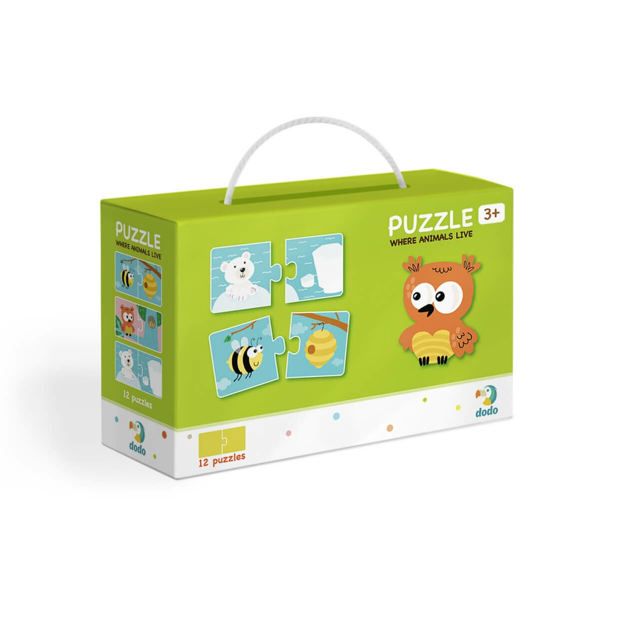 А вы знаете, где живет лиса? А белый мишка? Предложите малышу ответить на эти вопросы. А чтобы ему было проще, соберите вместе с ним пазлы-парочки. Каждая картинка в таком пазле состоит всего из двух элементов. На одном из них нарисовано животное, а на другой – место, где оно обитает. В процессе сборки пазла ребенок узнает много нового и научится мыслить логически. В комплекте вы найдете 12 красочных картинок (всего 24 детали). Все они сделаны из плотного картона, который отлично выдерживает нагрузки. Игровой набор подойдет для развивающих занятий с ребенком, улучшения речевых навыков и мелкой моторики.