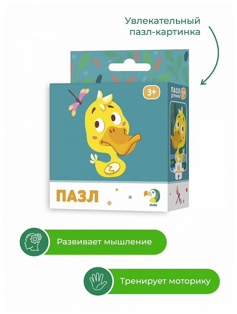 Для ребенка пазл – это настоящее волшебство! Из разрозненных деталей, на которых поначалу ничего нельзя понять, получается цельное, красочное изображение. С набором Утенок каждый малыш почувствует себя маленьким волшебником, собирающим нечто прекрасное. Данная модель позволит собрать изображение утенка в пруду. Работать с такой картинкой очень увлекательно, она радует контрастными цветами и любопытными элементами. ПАЗЛ состоит из 16 деталей, поэтому собрать его смогут даже самые маленькие.