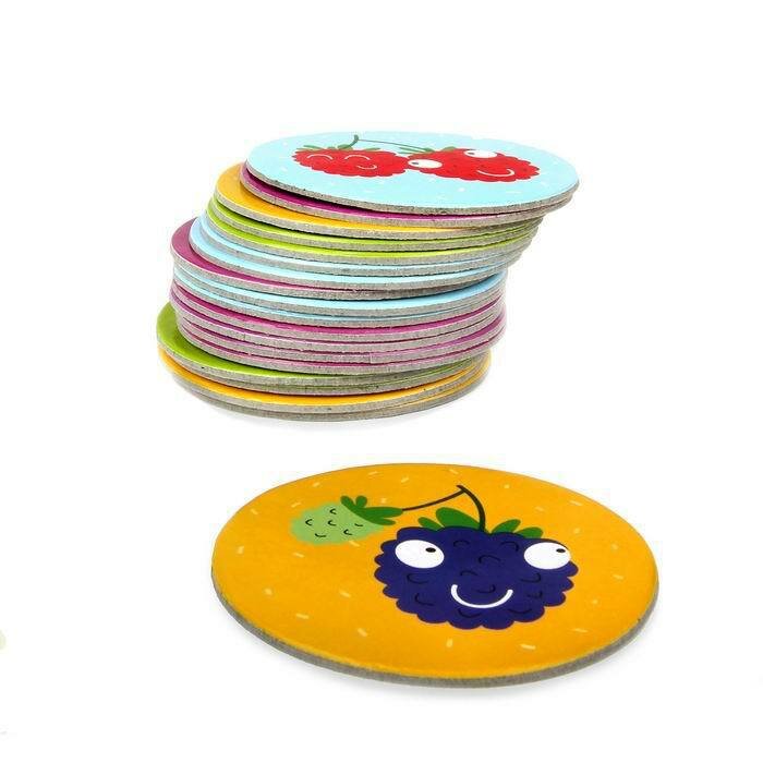С этой игрой ребенок не только улучшит память, но и выучит названия самых популярных садовых ягод. У мемо-игры очень простые правила, и она по-настоящему увлекает детей. В наборе вы найдете 24 фишки с изображениями разных ягод. Каждая карточка имеет свою пару с такой же картинкой. Ребенок по очереди открывает фишки, разложенные изображением вниз, запоминает расположение различных ягод и находит для них пары. Фишки можно использовать и для других игр на память и логику. Они выполнены из прочного картона, который устойчив к внешним воздействиям.