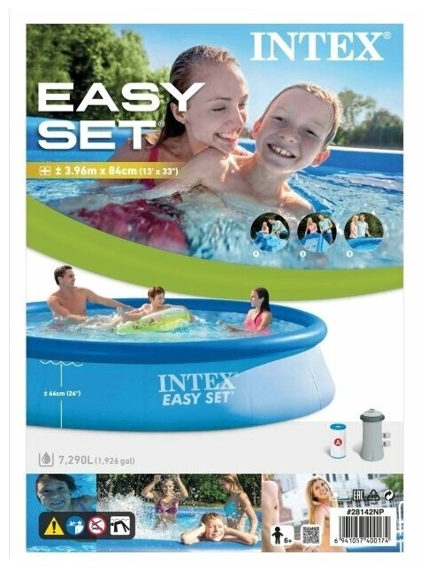 - Бассейн Easy Set, 396х84см, 7290л + фильтр-насос (Intex) обзор 28142