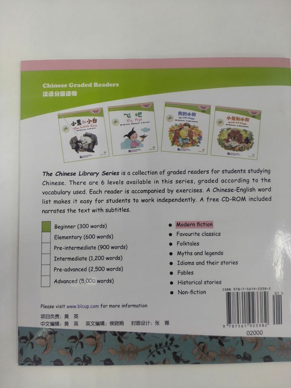 This book, designed for beginners, is in Chinese Graded Readers: Beginners Level of the Chinese Library Series. This is an interesting story about a naught parrot learning to talk.