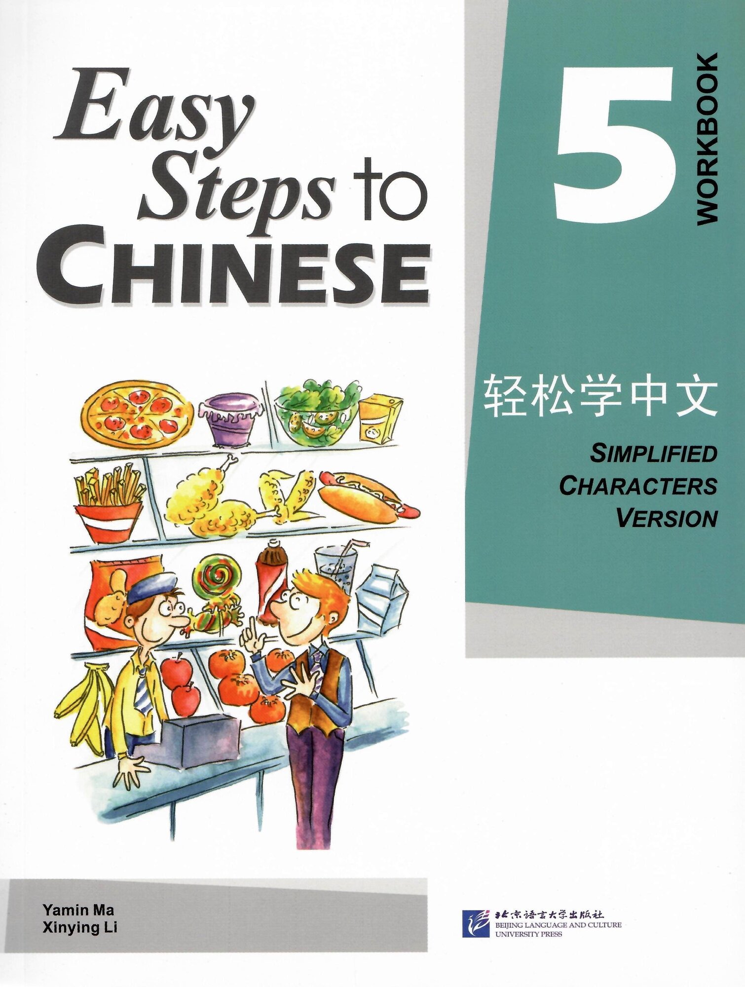 Это 5-й том. Рабочая тетрадь из серии «Легкие шаги к китайскому», в которой приводятся упражнения, тесно связанные с содержанием в 5-м томе. Учебник. По сравнению с предыдущими четырьмя томами в этом томе больше внимания уделяется обучению студентов пониманию всего отрывка. Таким образом, он включает в себя не только упражнения для каждого урока, 5 блоков обзоров и тестов и список слов, индексируемый на пиньинь, но также добавляет больше упражнений по чтению. Отрывки длиннее и сложнее, в которых появляются некоторые слова, не перечисленные в словаре. Это значительно улучшает способность учащихся понимать и понимать общие языковые навыки учащихся.