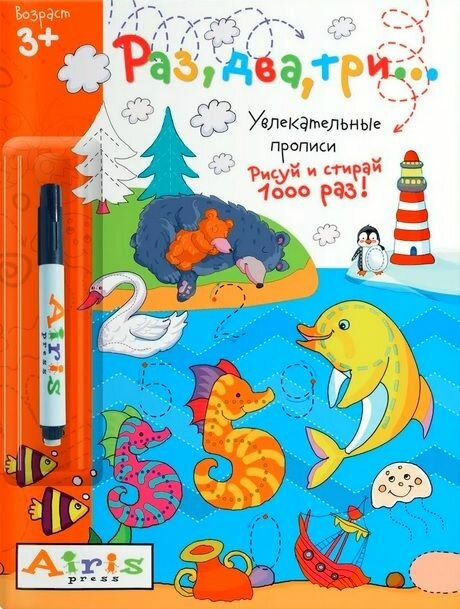 Раз два три Рисуй и стирай Увлекательные прописи с фломастером (Самусенко Ольга Александровна, Зверева Вера (иллюстратор)); Айрис-пресс, 2019