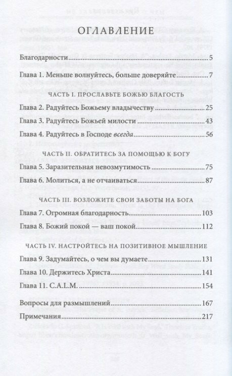 Тревожность — это, по словам Макса Лукадо, метеоритный дождь из бесчисленных «что если». Она лишает нас полноценного сна. Высасывает из нас энергию. Расшатывает наше здоровье. Можно ли от нее избавиться? Осуществимо ли то, к чему призывал апостол Павел, написавший: «НЕ ЗАБОТЬТЕСЬ НИ О ЧЕМ...»? Да, уверен автор книги — доверившись Богу, мы с Его помощью можем обрести покой и «мир Божий, который превыше всякого ума».