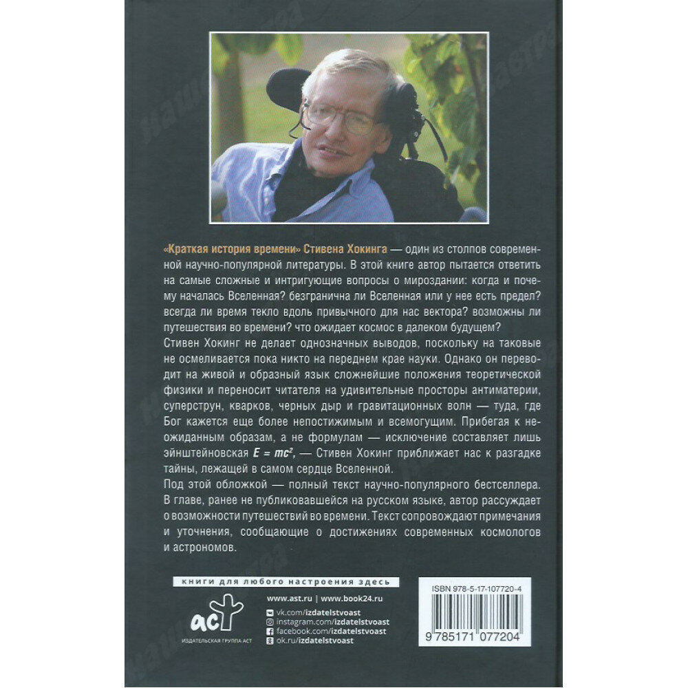 На сегодняшний день товар «Книга: Краткая история времени (Новый перевод) (Стивен Хокинг); Издательство АСТ, 1988, 1996» можно купить с кешбеком в 5 магазинах: book24, ЛитРес, Буквоед, Яндекс.Маркет, Читай-город