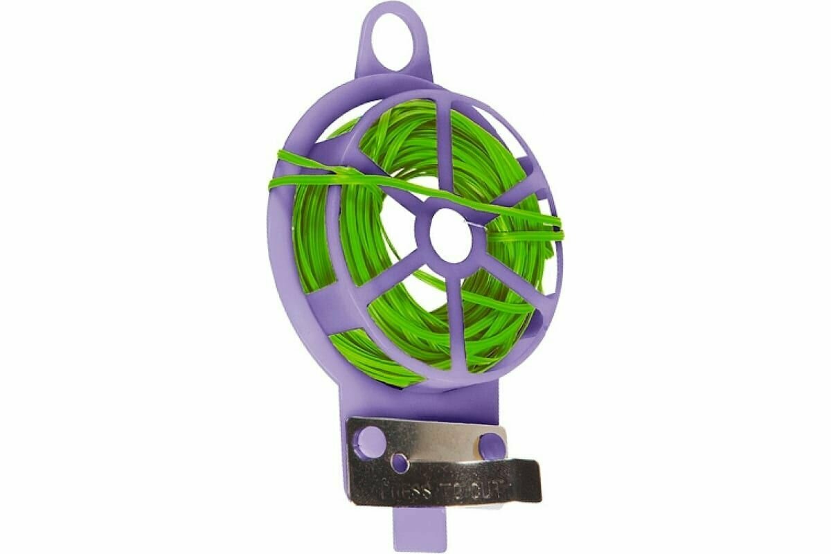 Проволока предназначена для подвязки высоких и гибких растений к специальным колышкам или связывания растений в пучок. Бобина из мягкой проволоки в ПВХ-изоляции, заключенная в обойму из прочного АБС-пластика. На обойме имеется встроенный нож для отреза проволоки. Мягкость и гибкость позволяет бережно обращаться со стеблями, а также использовать проволоку многократно. Имеющаяся петля позволяет подвешивать изделие на крючок, штырь, ветку для быстрого доступа. Также можно использовать в бытовых целях.