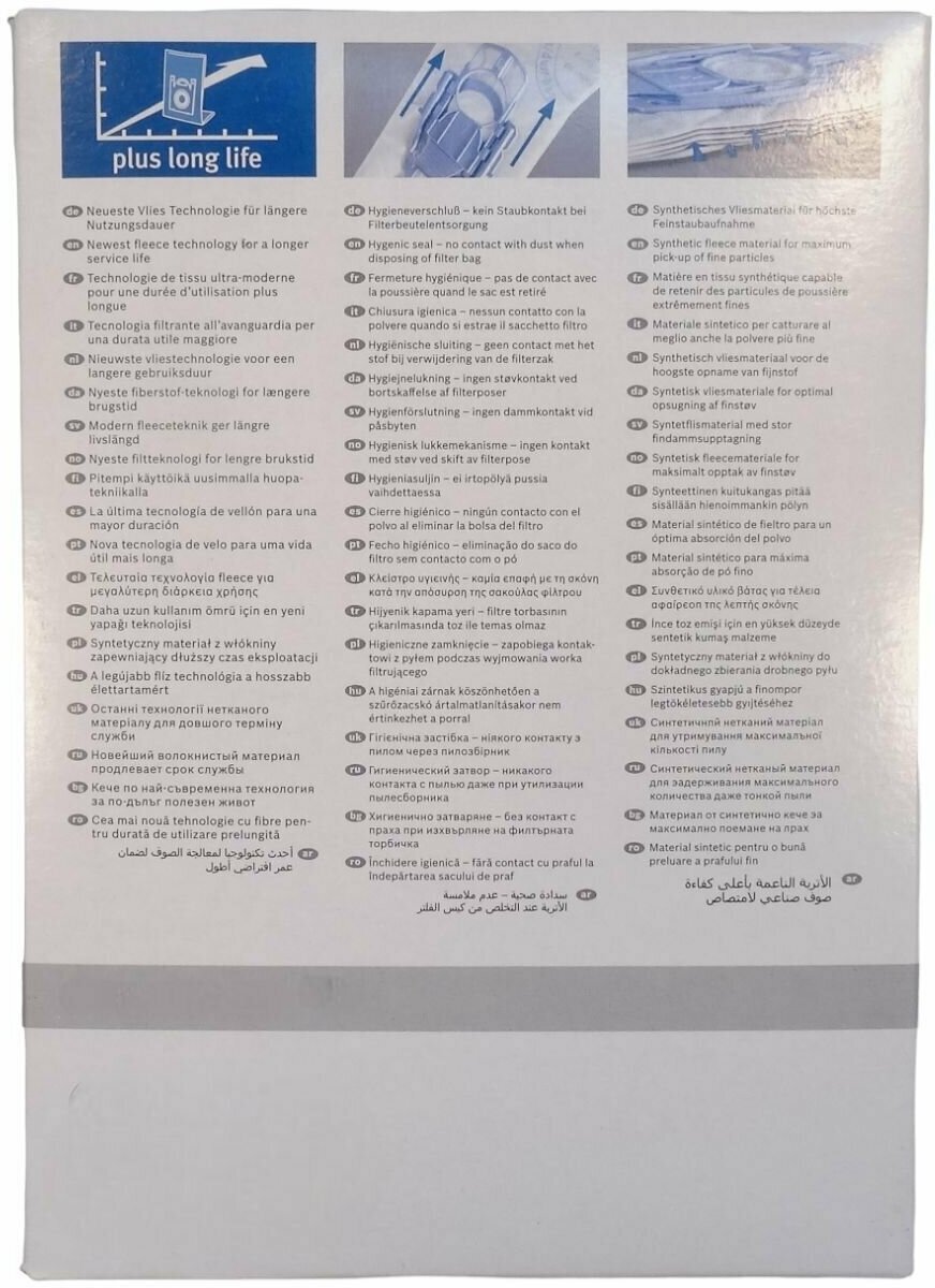 Без бытовой технике, а тем более современной, которая поддерживает чистоту дома, сегодня не возможно представить бит человека. Приобрести надежный и качественный пылесос это означает выбрать помощника по дому. Каждый пылесос нуждается в качественных аксессуарах, которые продлят строк службы прибора, а процесс уборки превратит в удовольствие. Одними из таких аксессуаров есть сменные мешки для сбора пыли Bosch . В комплекте предоставлено 4 мешка. С расчетом на 6 литров. Пылесборник в своем составе имеет 3 слоя из синтетического материала. Который позволяет задерживать всасывающую пыль практически на 100%. В отличие от бумажных они практичные, имеют длительный срок использования. А новая технология, которая использованная в мешках-пылесборниках позволит задерживать даже мельчайшие частицы. Такие мешки обработанные специальным антимикробным составом. Пыль надежно изолированная. Замена мешка не занимает много времени у хозяина, уходит всего лишь несколько минут. Приобретая такой пылесборник, помните, что это продукт высокой технологии, который нельзя отклонить.