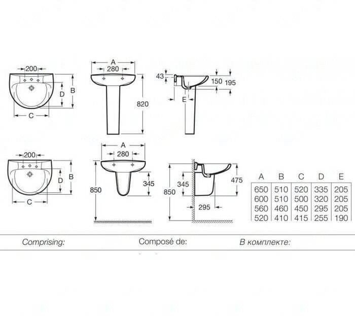 | Комплектация | Раковина, установочный комплект |