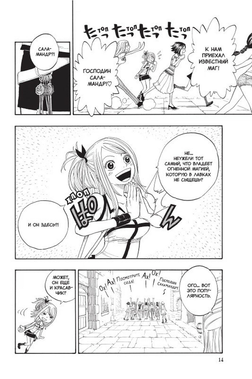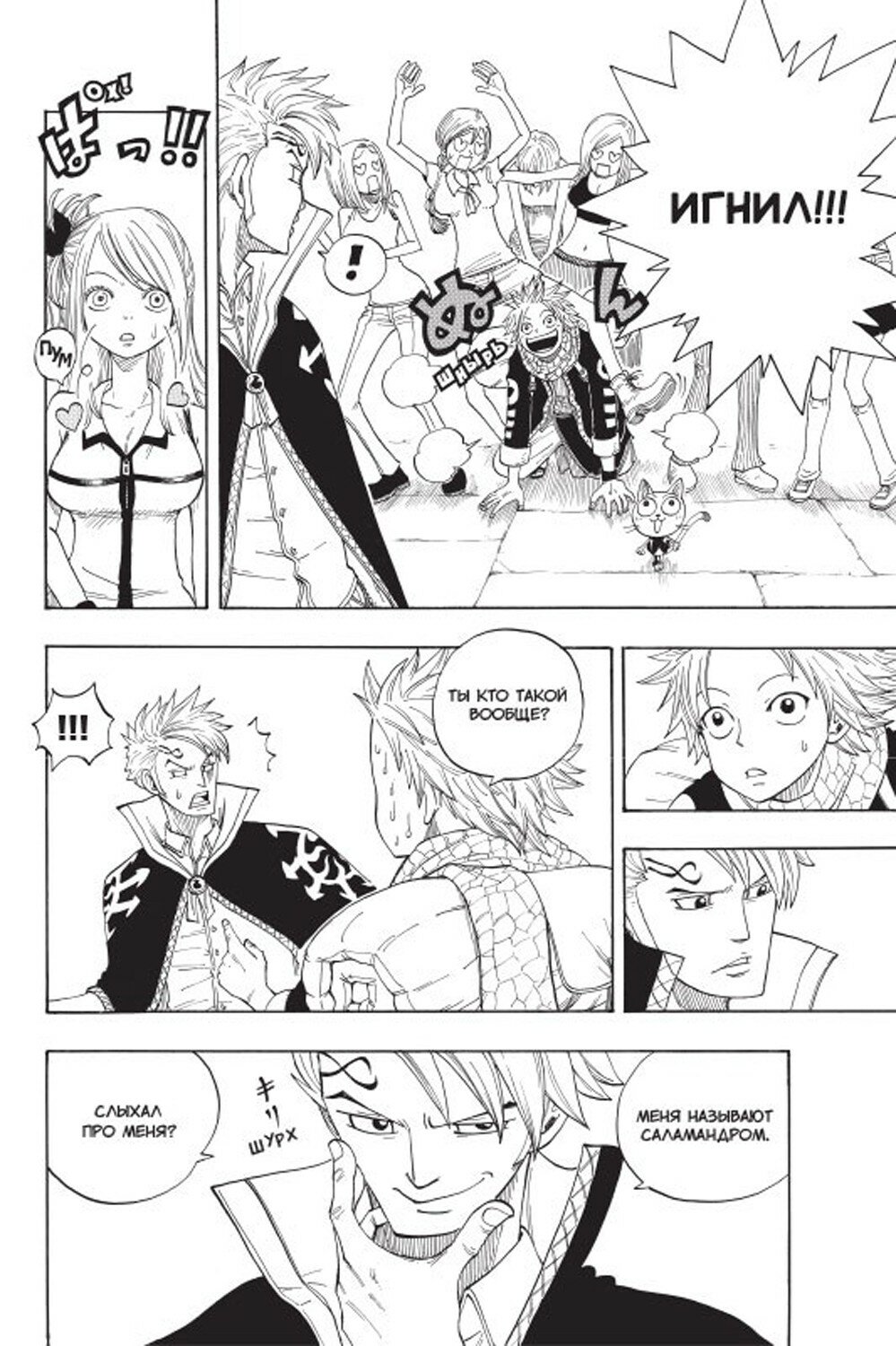 Первый том как и полагается знакомит нас с главными героями(Нацу,Люси и Хеппи),некоторыми особенностями магии в этом мире ,а также во всех красках описывается то что члены гильдии "Хвост феи" могут назвать будничной рутиной. По ходу повествования мы знакомимся с ещё несколькими магами ,которые в дальнейшем раскроются как полноценные персонажи с собственной правдой и нелёгкой судьбой .В частности и с магистром(мастером) гильдии Макаровым (имя).