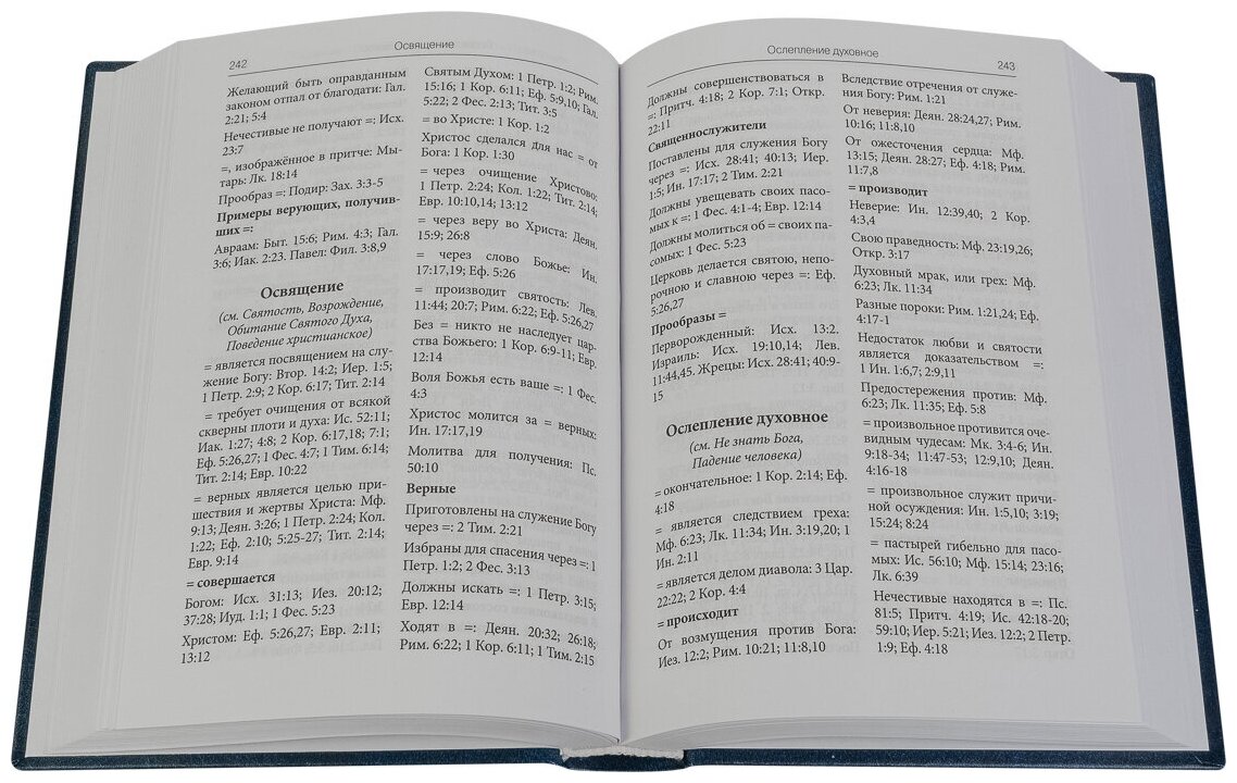 "Библейский богословский словарь" представляет собой уникальный справочник по Ветхому и Новому Завету, принципиально отличающийся от других хорошо известных изданий подобного рода (например, симфоний и энциклопедий). Данный Словарь незаменим как при регулярном чтении Библии, так и для серьезной научной работы. Издание содержит расположенные в азбучном порядке темы с подробными аналитическими подразделениями внутри каждой. Всего в словаре находится более пятидесяти тысяч текстов и более трехсот тысяч цифр. Кроме того, в конце каждой статьи, разъясняющей в Словаре основное слово, приведены исторические примеры из всей Библии, подтверждающие вышеизложенное в ней догматическое или нравственное учение.