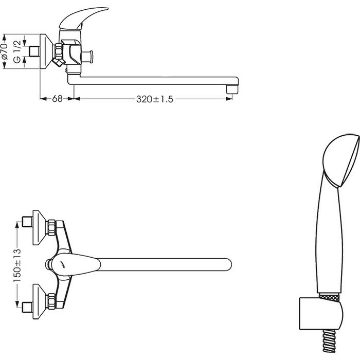 | Комплектация | держатель для душа; душевой шланг; лейка; смеситель |