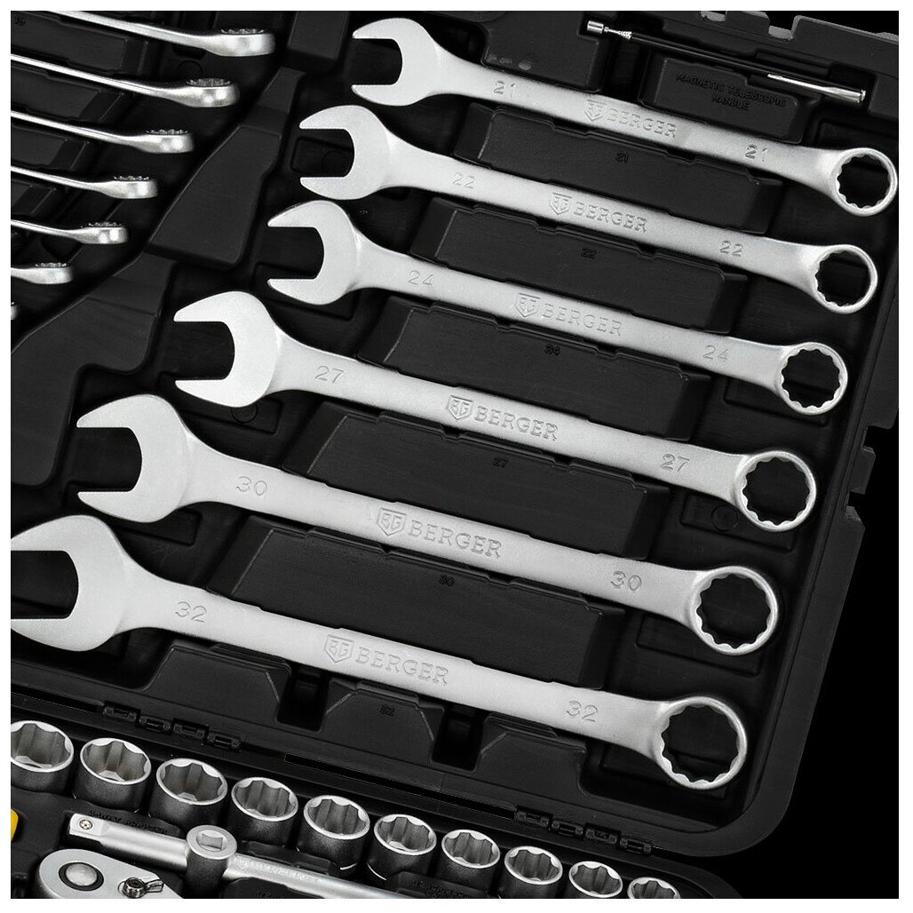 Универсальный набор инструментов BERGER предназначен для профессионального использования. Набор является практичным благодаря широкому ассортименту элементов, которые входят в его состав. Все предметы выполнены из высокопрочной легированной стали, которая проходит процесс специализированной обработки. Набор поставляется в удобном высокопрочном пластиковом кейсе для хранения и транспортировки.