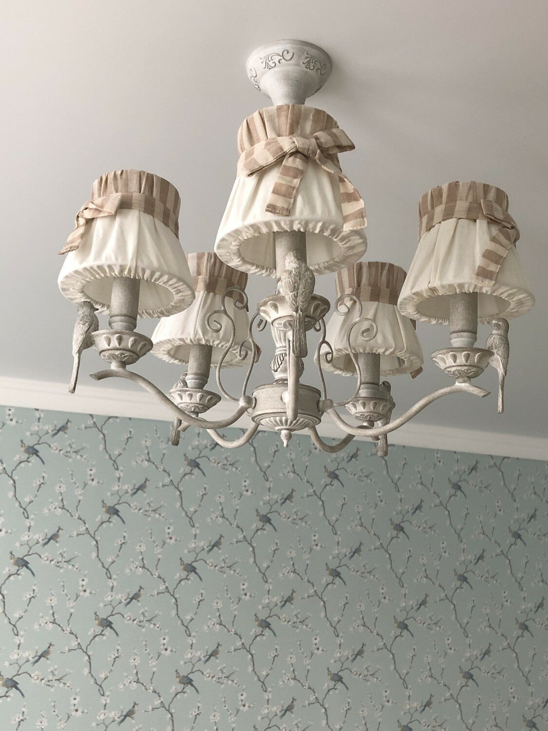 | Декор | декоративные птицы на арматуре, банты на абажуре |