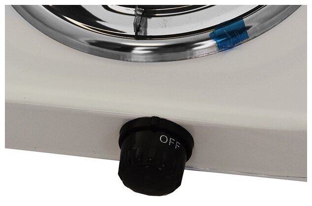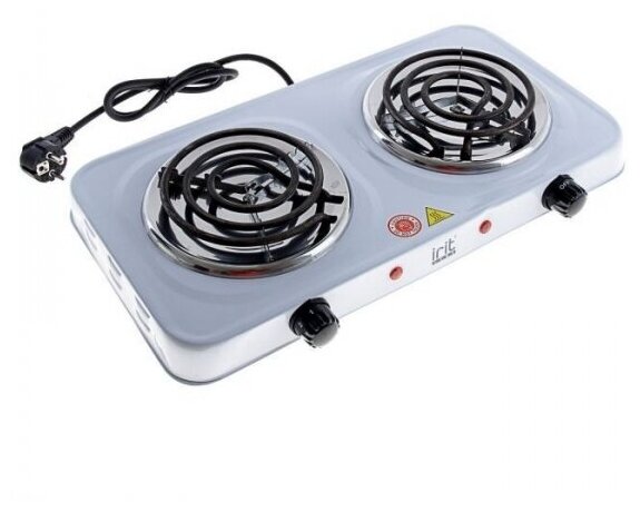 Белая электрическая плитка Irit с механическим управлением оснащена двумя поворотными переключателями и индикатором работы. Плитка имеет две конфорки, позволяющие готовить сразу несколько блюд.
