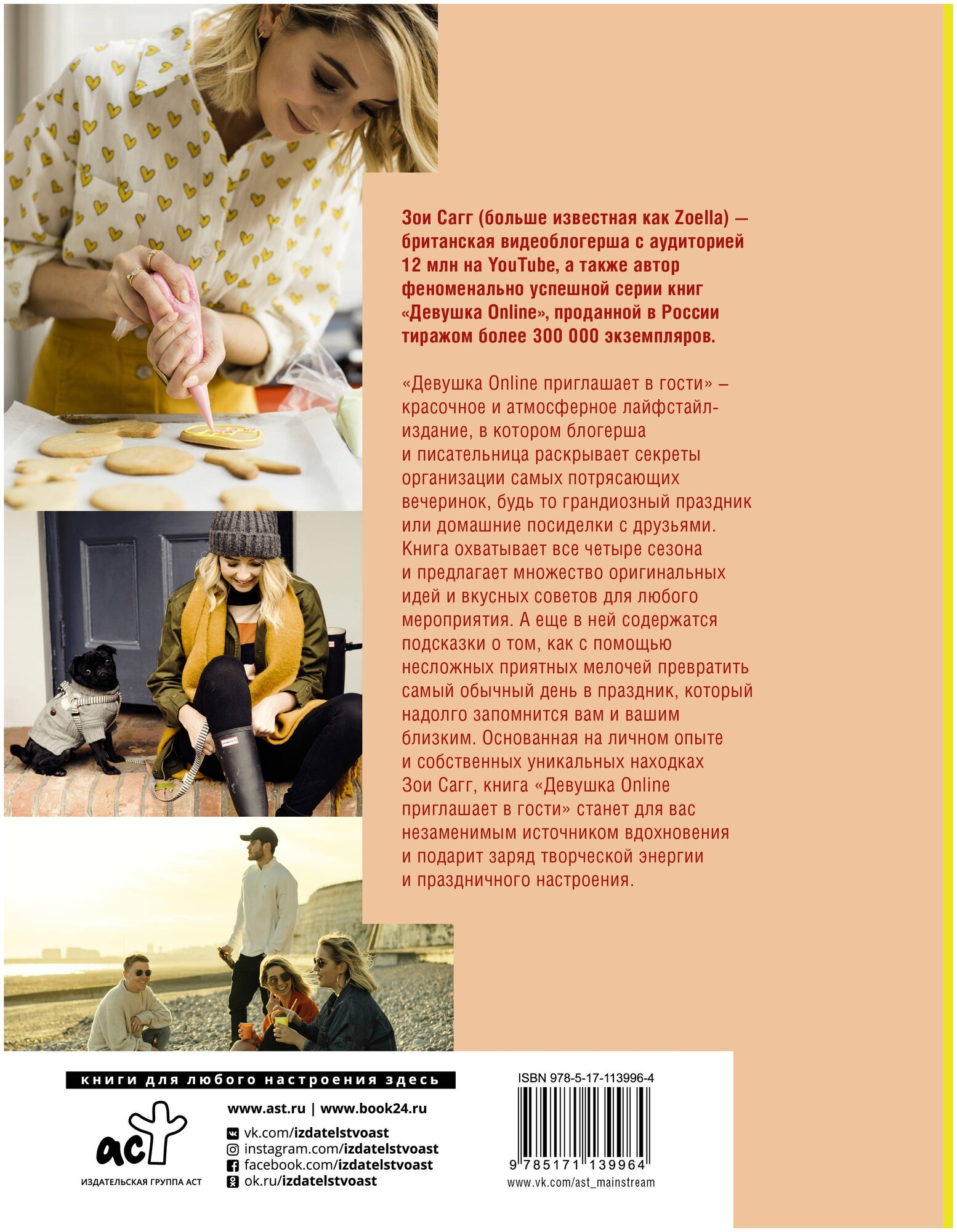 "Девушка Online приглашает в гости" - красочное и атмосферное лайфстайл-издание, в котором блогерша и писательница раскрывает секреты организации самых потрясающих вечеринок, будь то грандиозный праздник или домашние посиделки с друзьями. Книга охватывает все четыре сезона и предлагает множество оригинальных идей и вкусных советов для любого мероприятия. А еще в ней содержатся подсказки о том, как с помощью несложных приятных мелочей превратить самый обычный день в праздник, который надолго запомнится вам и вашим близким. Основанная на личном опыте и собственных уникальных находках Зои Сагг, книга "Девушка Online приглашает в гости" станет для вас незаменимым источником вдохновения и подарит заряд творческой энергии и праздничного настроения.