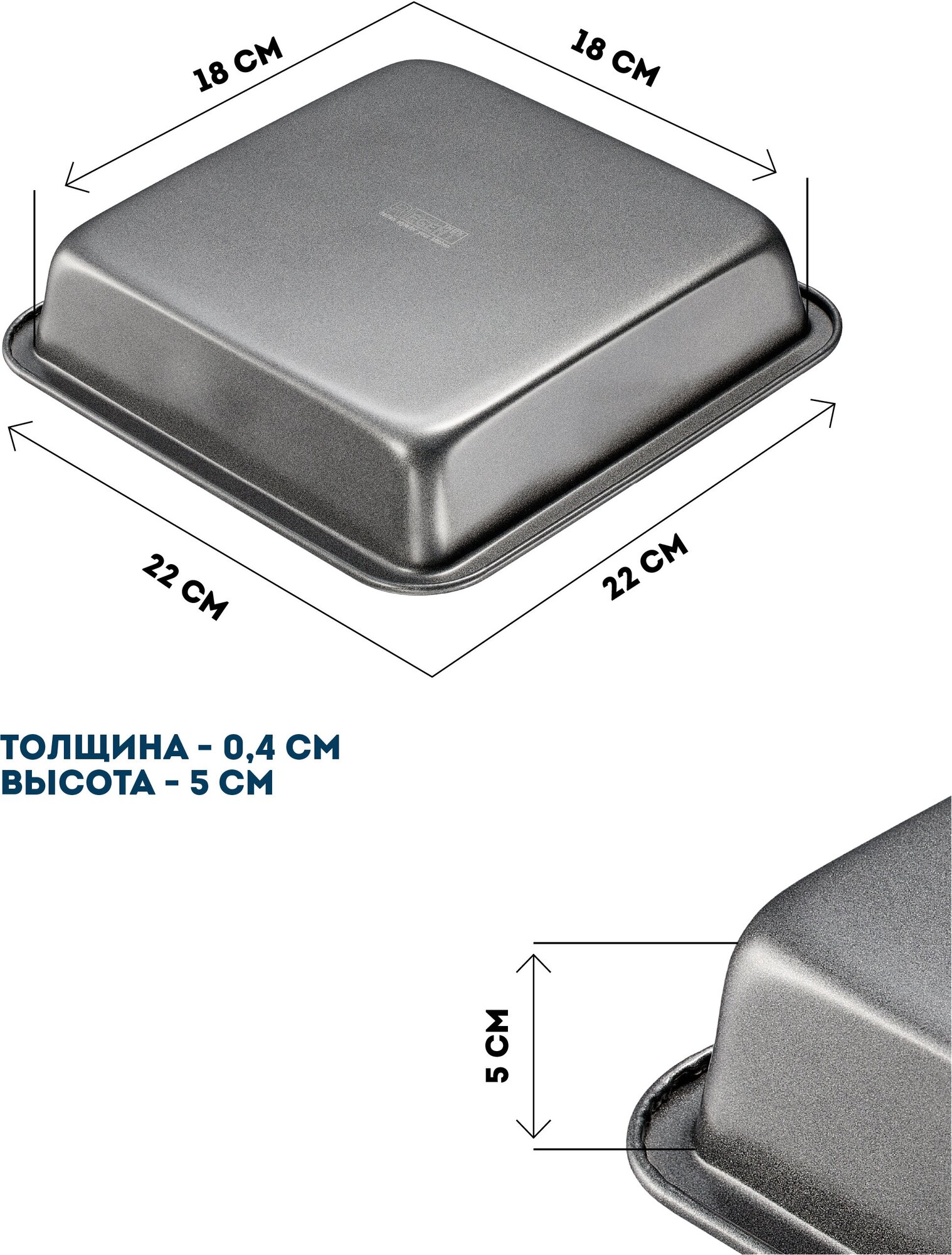 Квадратная форма, изготовленная из углеродистой стали, легкая и удобная в использовании. Её с легкостью можно мыть вручную и в посудомоечной машине. Значительная толщина стенок и дна противня исключает деформацию корпуса, гарантируя долговечность посуды. Благодаря прочному антипригарному покрытию, у вас появится возможность готовить с минимальным количеством масла. Форму можно применить в духовках любого вида (электрической, газовой, микроволновой) для приготовления блюд из говядины, овощей, рыбы, выпечки