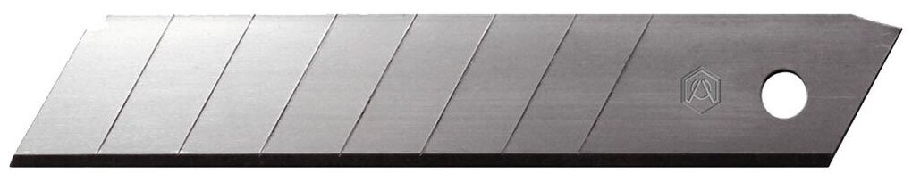 Лезвие сегментное Armero 25 мм (10 шт.) — съемное лезвие сегментарной формы для канцелярских ножей. Данные лезвия всегда остается острым и не нуждается в заточке: затупившийся сегмент можно отломать с помощью дополнительных приборов. Изделие выполнено из высокоуглеродистой стали. Лезвие 25 мм идеально подойдет для профессионального класса и выполнения тяжелых работ по ремонту, рассчитан на работу по мягким материалам. Используется для резки картона, поролона, обоев, бумаги, сендвич-панелей, линолеума, а также гипсокартона. При резке рекомендуется использовать непрорезаемый коврик, который увеличит срок службы лезвий и защитит поверхность от повреждений. Меры предосторожности: лезвие должно полностью подходить материалу по толщине. При работе соблюдайте базовые правила безопасности и не используйте затупившееся лезвие — это исключит травмирование и обеспечит ровный рез. Надевайте перчатки и очки для защиты. Храните лезвия в специальном контейнере вдали от детей и животных. Преимущества сегментного лезвия Armero: — универсальное использование подходит для любых мягких материалов; — высококачественная сталь; — возможность не затачивать лезвие; — наличие удобного бокса для хранения запасных лезвий.