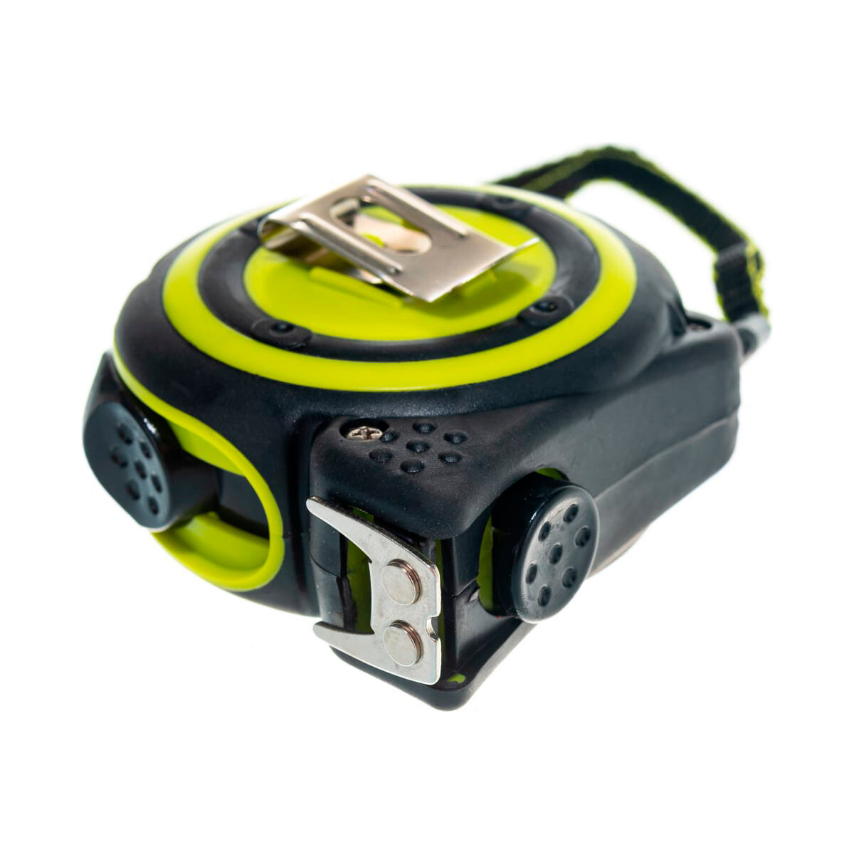 Интегрированные в корпус резиновые противоударные вставки, предохраняющие рулетку от повреждения при падении и обеспечивающие ее надежное удержание при работе
