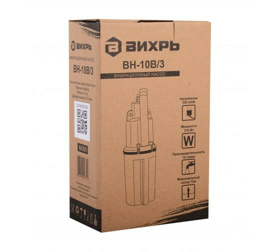 Вибрационный насос ВИХРЬ ВН-10В/3(новинка 2019 года) прост в использовании. Агрегат применяется для перекачивания воды из резервуаров и колодцев. Электрический двигатель мощностью 210 Вт дает напор до 72 метров и производительность до 16 л/мин. Разборные части крепко стянуты болтами. Насос требователен к качеству воды: вода должна быть чистая, без примесей и песка. Максимальная глубина погружения составляет 3 метра.