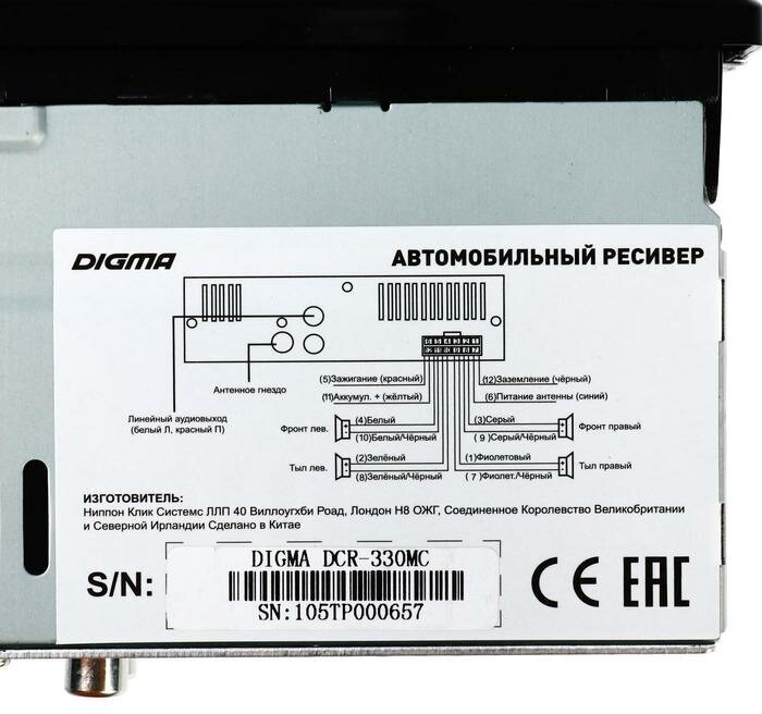Автомагнитола DIGMA USB SD/MMC DCR-330MC