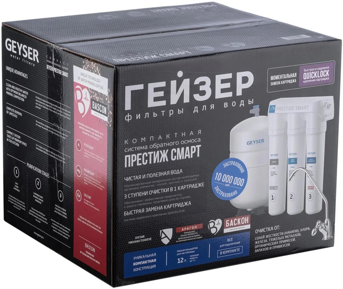 | Доп. наименование Водопад | Фильтр бытовой Гейзер Престиж Смарт, питьевая вода, ХВС, 3-х ступ., система Осмос,под мойку (12л) |