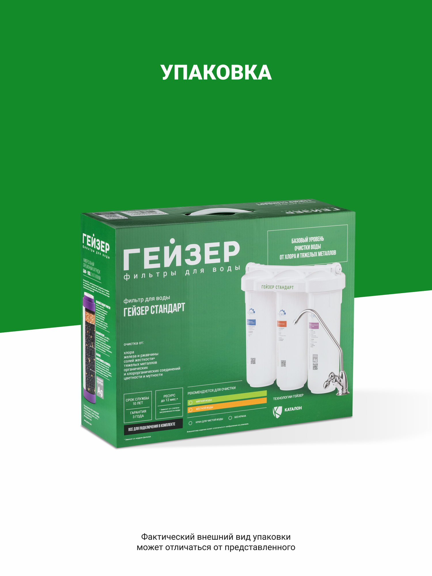 | Доп. наименование Водопад | Фильтр бытовой Гейзер-Стандарт, питьевая вода, ХВС, 3-х ступенчатый, под мойку |