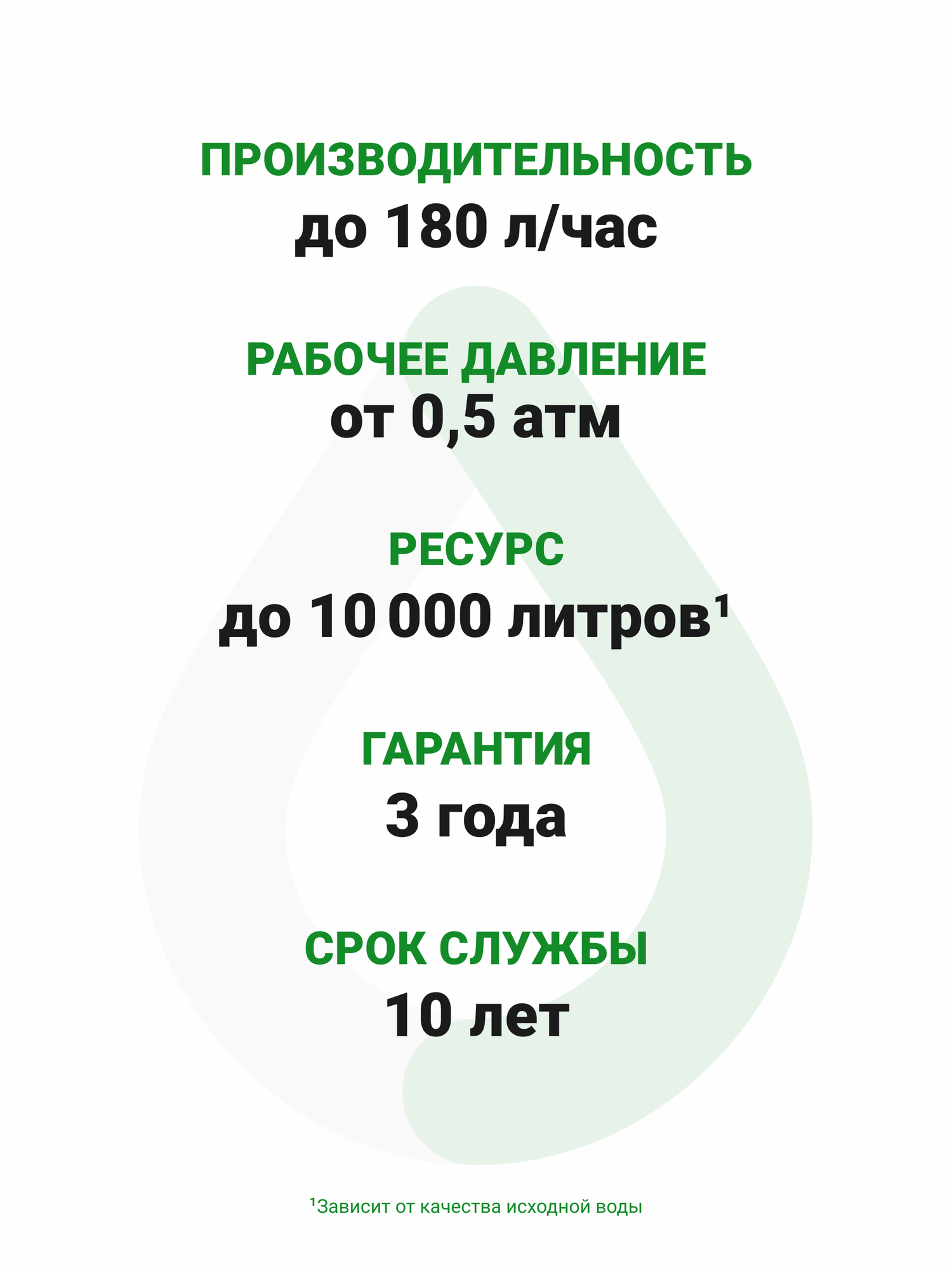 | Ресурс стандартного фильтрующего модуля | 7000 л |