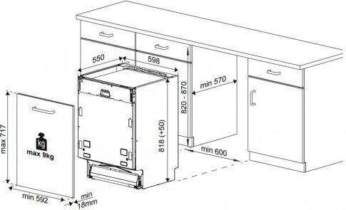 | Комплект поставки | Встраиваемая посудомоечная машина, корзинка для приборов, воронка для соли, шланг наливной, шланг сливной, документация |