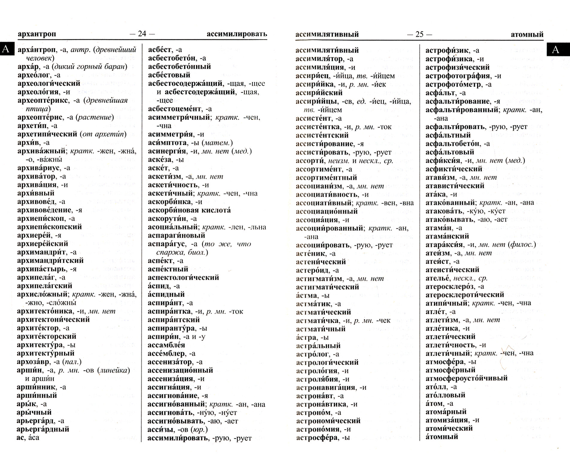 Орфографический словарь содержит около 125 000 слов и словоформ. В нем широко представлена самая распространенная лексика. Также в издании приведены слова из научной лексики, которые при написании могут вызвать затруднения.
