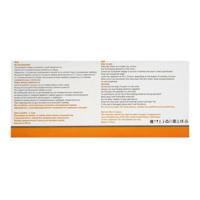 | Комплектация | Электросушилка для обуви-1шт |