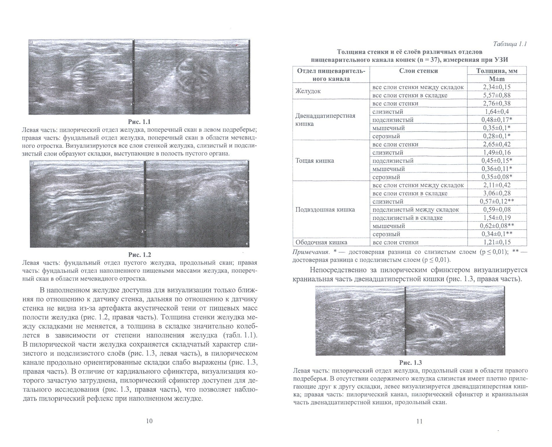 Монография посвящена описанию морфометрических и эхографических характеристик пищеварительного канала собак и кошек при транскутанном ультразвуковом исследовании. Приведены метрические показатели слоев стенки различных отделов пищеварительного канала. Впервые описана количественная характеристика эхогенности слоев стенки желудка и тонкого кишечника у собак и кошек и их соотношение. Охарактеризована эхогенность слоев стенки тонкого отдела кишечника у собак и кошек натощак и в различные временные интервалы постпрандиального периода. Определен коэффициент эхогенности двенадцатиперстной, тощей и подвздошной кишок, позволяющий проводить объективную оценку стенки кишечника с учетом вариабельности настроек различных сканеров. Описаны эхографическое проявление и локализация артефактов у собак и кошек при сканировании пищеварительного канала в режиме серой шкалы: акустической тени, реверберации, "хвоста кометы", дистального псевдоакустического усиления сигнала; в режиме цветного допплеровского картирования - артефакта движения.