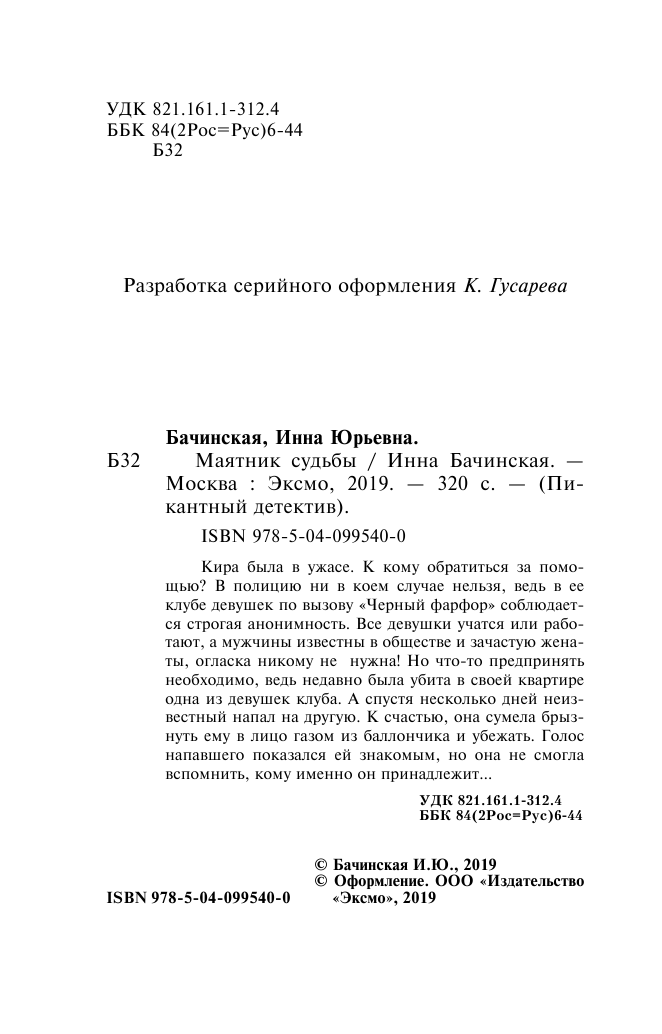 Книга: Маятник судьбы (Инна Юрьевна Бачинская); Эксмо, 2019
