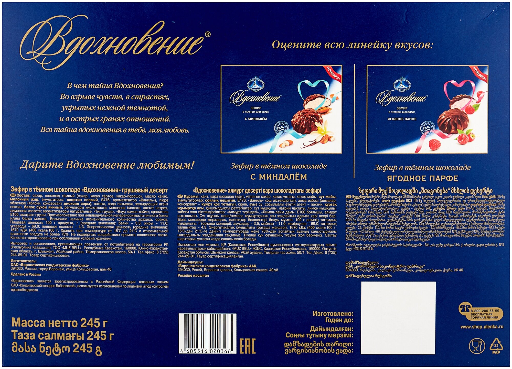 Сервис сравнения цен СкидкаГИД предлагает сравнить цены на товар «Зефир Вдохновение Грушевый десерт в темном шоколаде 245г Воронежская КФ»