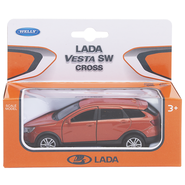 LADA VESTA SW CROSS – невероятно стильный кроссовер. Модель данной машины выполнена в масштабе 1:34-39. Она очень детализирована и тщательно проработана до мелочей: стекла, боковые зеркала, диски, фары, дворники, и т.д. У машинки открываются передние двери и вращаются колёса. Корпус выполнен из металла с добавлением пластиковых элементов.
