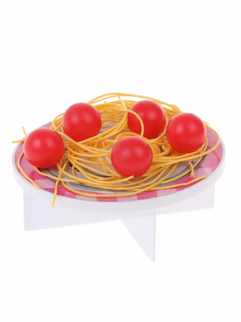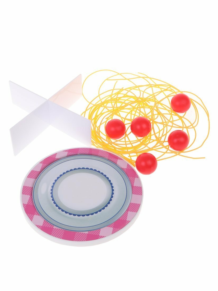 Настольная игра «Паста на тарелке» предназначена для развития у детей ловкости рук и координации движений. Кроме того, настольные игры - это прекрасный повод провести вечер в компании семьи или друзей, который подарит хорошее настроение и детям, и взрослым. Задача каждого игрока заключается в том, чтобы вытащить одной рукой как можно больше вермишели из тарелки. Вытягивать её нужно по одной штуке в соответствии со своей очередью. Во время игры ни спагетти, ни помидоры не должны касаться стола. Количество игроков: 2-4. Диаметр тарелки составляет 17 см. Изделие изготовлено из пластмассы. Рекомендованный возраст: 7 лет +