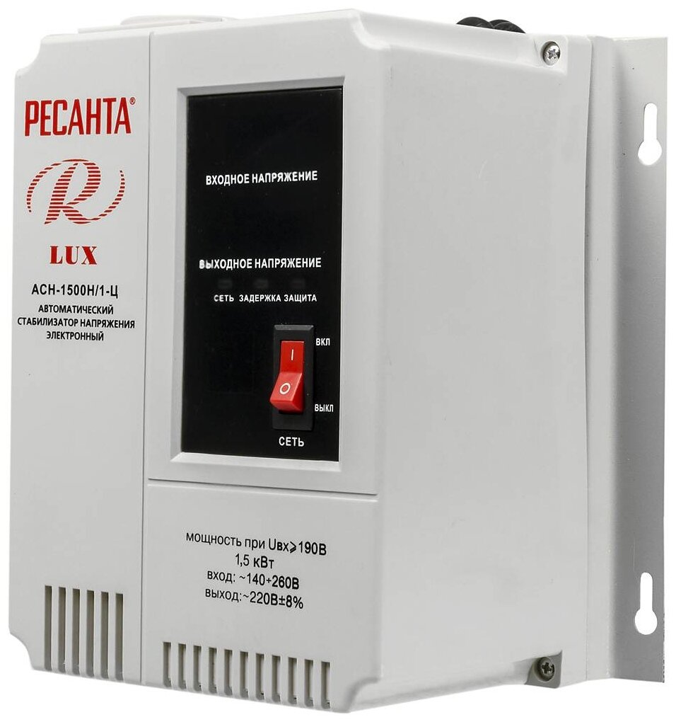 Живу я в сельской местности, как следствие постоянные перепады напряжения в доме. В наш век передовых технологий очень не хотелось бы остаться без холодильника или стиральной машины. Долго искал подходящий стабилизатор и выбор пал ресанту 1500Н (настенный). работает на ура, даже когда входное напряжение падает до 100В, смело на выходе 220. Всем рекомендую!!!