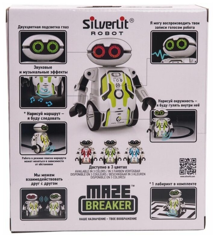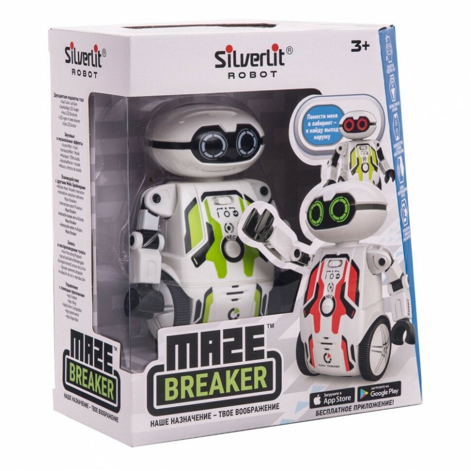 Уникальное умение Мейз Брейкера — находить дорогу в лабиринте. В комплекте с роботом идет постер с двумя лабиринтами. Поставьте робота на белое поле, и Мейз Брейкер будет двигаться по белым дорожкам. Поставьте игрушку на черную линию, и робот будет двигаться только по ней. Можно самостоятельно придумывать и печатать на принтере новые лабиринты, Мейз Брейкер с удовольствием будет их проходить.Попробуйте распечатать окружность, поставьте Мейз Брейкера в середину, и увидите, что получится.