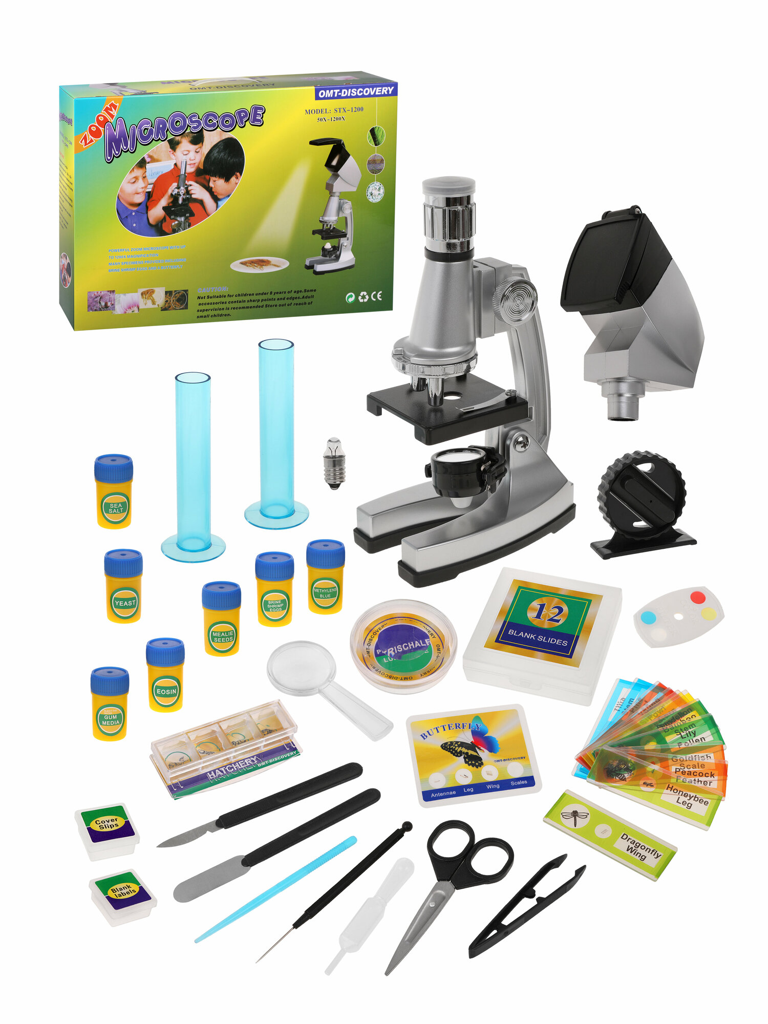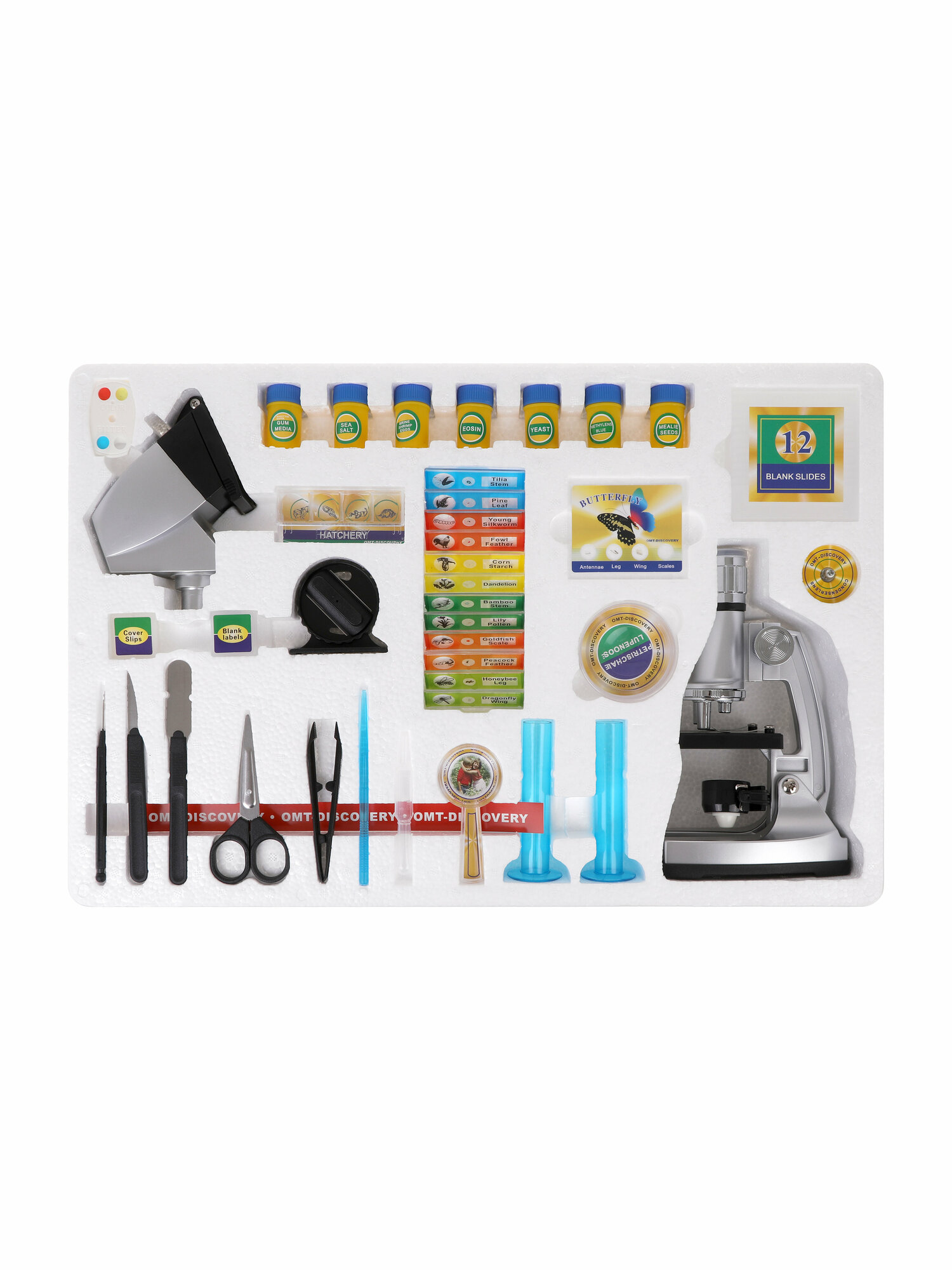 Набор Юный исследователь поможет ребёнку узнать много нового и совершить для себя интересные открытия. В комплект входит 27 предметов, с помощью которых можно проводить разнообразные опыты. Окуляр микроскопа имеет увеличение в 10х и 20х. Оптическая трубка располагается ниже окуляра и служит для фокусировки объективов. 3 объектива имеют разную мощность увеличения: в 5х, 20х и 60х. Микроскоп оснащен прорезиненным, нескользящим основанием. В инструкции приведены подробные описания опытов. Для работы изделия потребуются 2 батарейки типа АА на 1,5 V (не входят в комплект).
