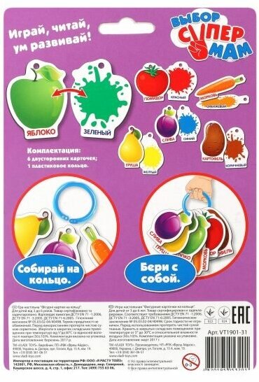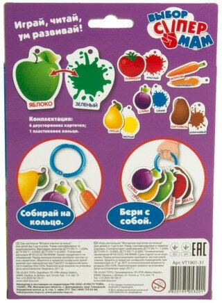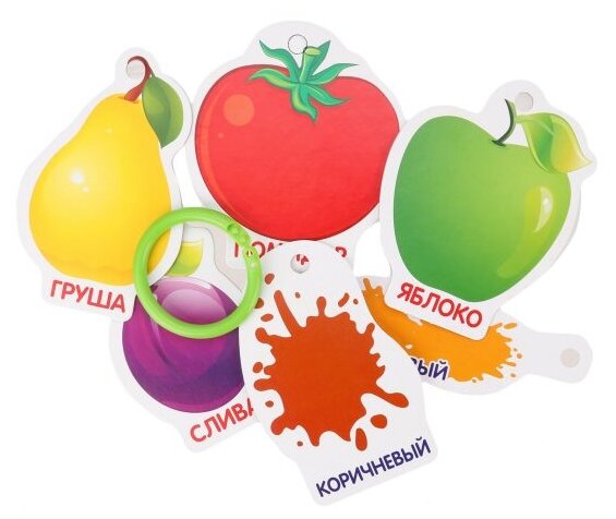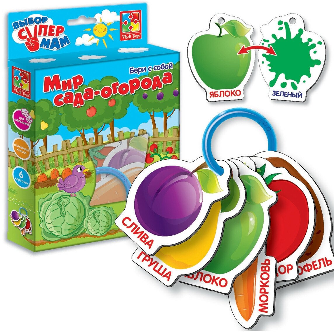Набор фигурных карточек на кольце Мир сада-огорода поможет малышу выучить названия некоторых овощей и фруктов, а ещё познакомит его с различными цветами. В комплект входят 6 двусторонних карточек и 1 пластиковое разъёмное колечко.