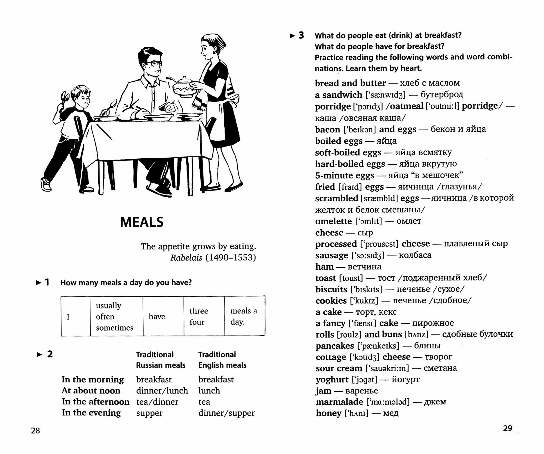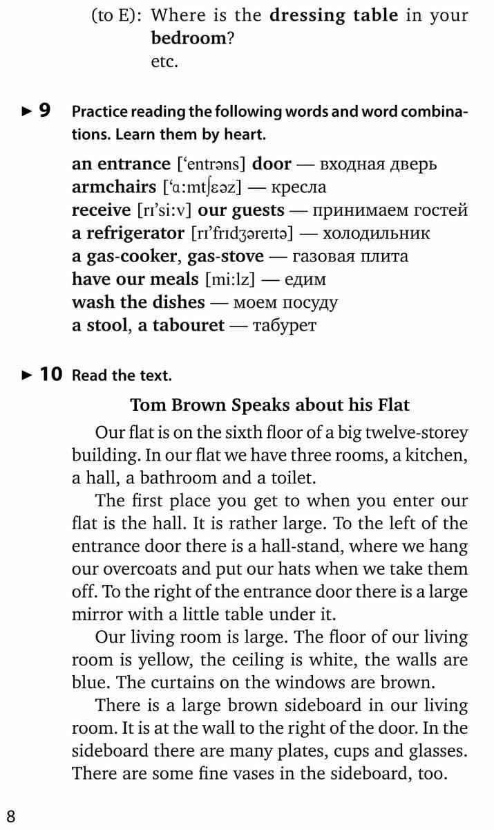 Учебник приобрела недавно, чтобы заниматься по нему с учениками, желающими развивать разговорные навыки и расширять словарный запас. Книга разбита на темы: "Еда", "Прогулка по городу", "Погода" и т.д. Сначала даётся лексика по теме, потом идут разговорные упражнения, тексты и диалоги. Учебник хорош именно для работы учителя с учеником, но не очень удобен для самостоятельной работы