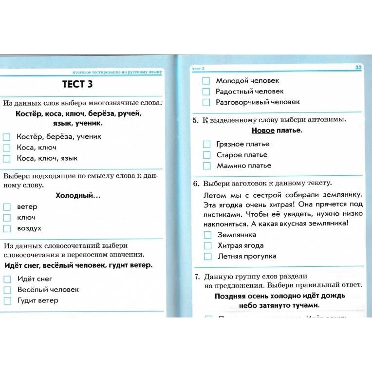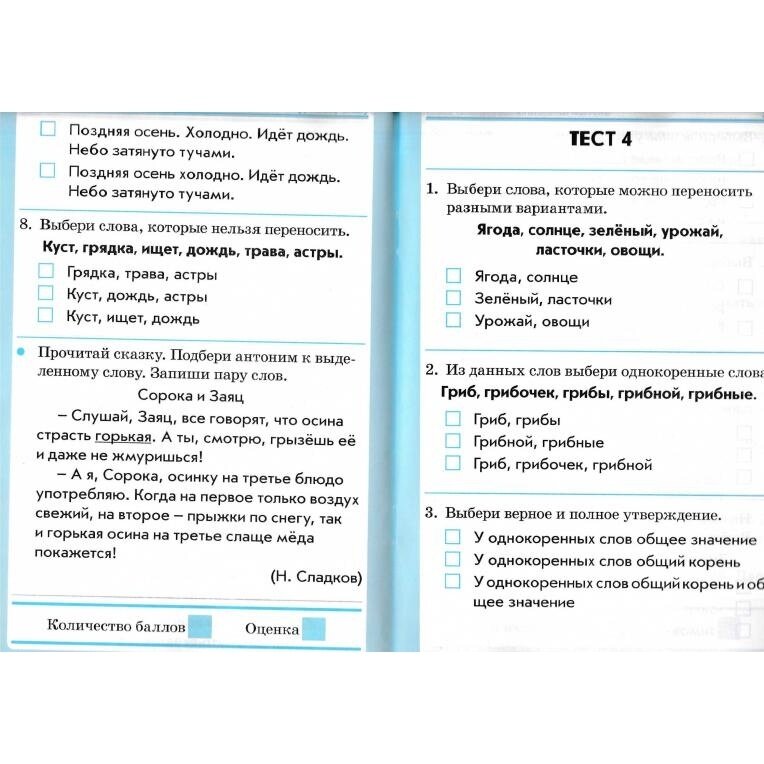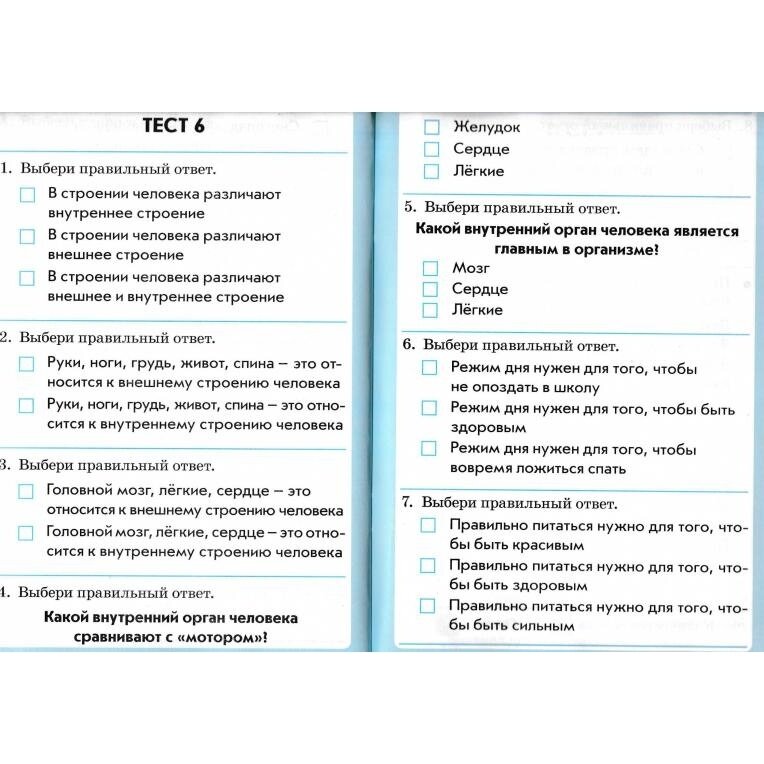 Приобрела для дополнительной проверки знаний дочки. 8 тестов по каждому предмету, по 8-9 вопросов в каждом тесте. Задания показались мне легкими. При тестировании из вариантов проще выбрать ответ, можно угадать верный. Но после выполнения дочкой нескольких тестов, увидела, что не все вопросы легкие и очевидные для нее. Восполняем пробелы и пополняем словарный запас.