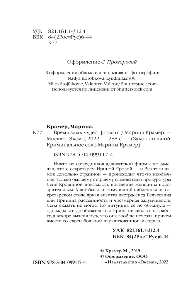 Книга: Время злых чудес (Марина Крамер); Эксмо, Редакция 1, 2022