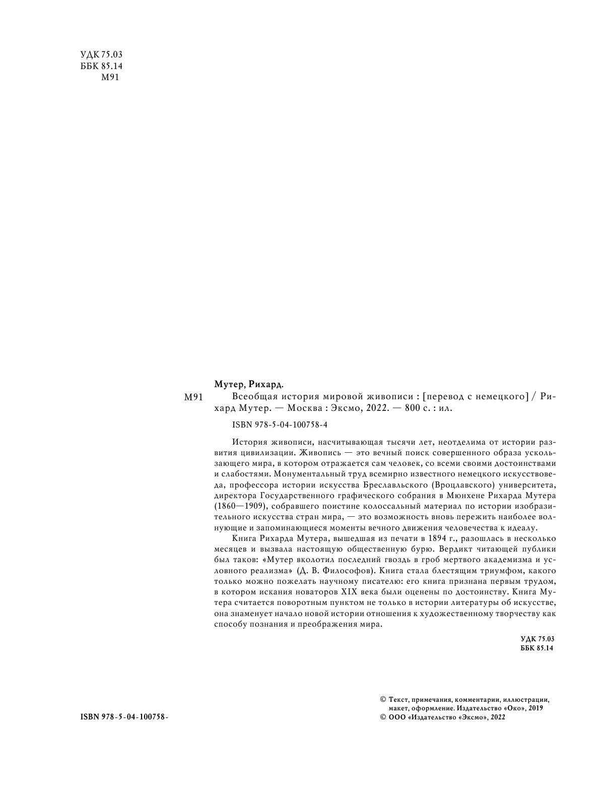 Всеобщая история мировой живописи (Мутер Рихард); ООО "Издательство "Эксмо", 2019