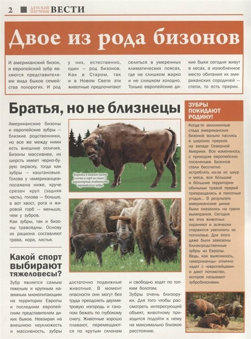 Данный выпуск "Детских научных вестей" посвящён удивительным животным, обитающим в разных уголках нашей планеты. Всё самое интересное о млекопитающих, птицах, рыбах и рептилиях - в коротких заметках, зрелищных иллюстрациях и сенсационных фактах вы найдёте на страницах этого издания.