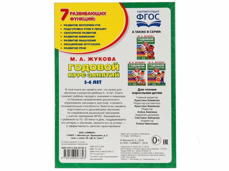 Годовой курс занятий 5-6 года. (Мария Александровна Жукова); Умка, 2018
